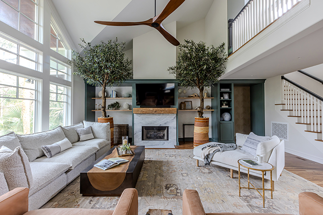 A family of four, who enjoys spending summers and holidays at Kiawah Island, found a home on the marsh that suited them perfectly for their getaways. The only issue was that the home, previously a rental property, was in dire need of a total makeover to suit their family’s lifestyle. “The home had unique spatial challenges that required some creative reconfiguration,” says Katelyn Irizarry, co-founder of boutique design-build firm PRD Custom Homes & Interiors, whom the homeowners retained to transform the spaces into their new “home away from home.”