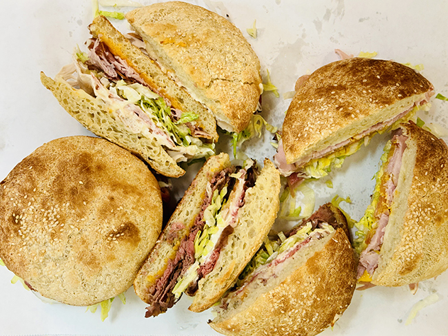 At Alvin Ord’s, it’s the freshly baked, round bread that really sets the menu apart. The recipe was created by its founder in the ‘70s, who mysteriously disappeared one day. After finding out he’d run off to become a Trappist monk, his nephews named the business after him and turned him into the shop’s mascot (a monk holding up a platter of sandwiches). The secret bread recipe is taught to each baker with strict adherence to its original quality. It’s made from scratch daily with four simple, natural ingredients.
